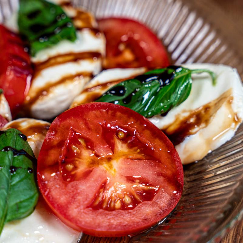 Fresh halved Brussel sprouts slightly char-broiled in butter and topped with bacon and balsamic reduction.